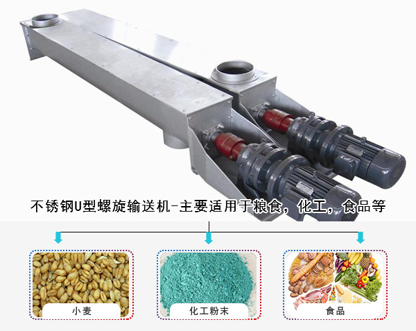 2,不銹鋼U行螺旋輸送機-主要適用于糧食,化工,食品等對輸送環境有要求的行業,清潔度高,并且不會對物料產生污染,使用時間長,但是造價相對較高。