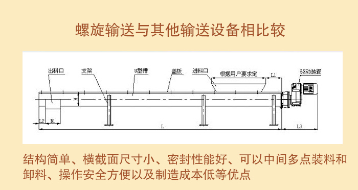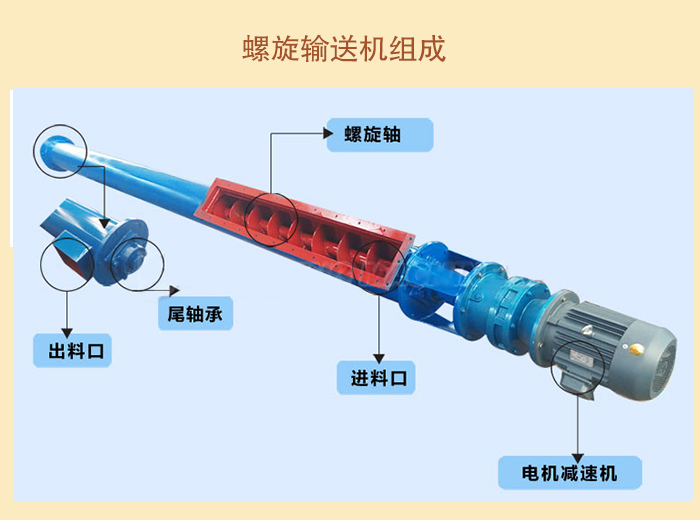 (5)螺旋輸送機(jī)由螺旋機(jī)本體、進(jìn)出料口及驅(qū)動(dòng)裝置三部分組成。
