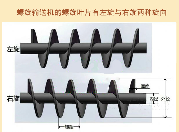 (2)螺旋輸送機(jī)的螺旋葉片有左旋與右旋兩種旋向。