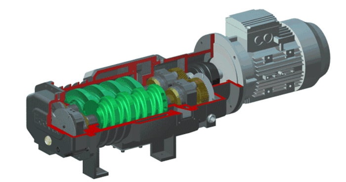 雙軸螺旋輸送機(jī)工作時(shí),物料從進(jìn)料口進(jìn)入,兩根螺旋軸相反方向轉(zhuǎn)動(dòng)時(shí)(一根左旋,一根右旋,可避免物料堵塞),物料在螺旋葉片的推力以及物料與葉片產(chǎn)生的摩擦力作用下,物料伴隨螺旋葉片的向前推動(dòng)而沿著料槽向前移動(dòng),直至出料口排出;在輸送過(guò)程中,還同時(shí)可對(duì)物料進(jìn)行攪拌和破碎。