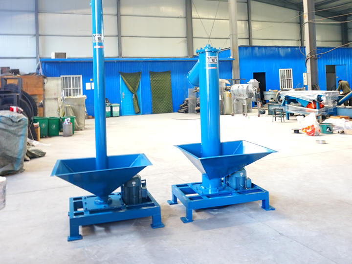 垂直螺旋輸送機(jī)的進(jìn)料必須保持必要的進(jìn)料力。當(dāng)進(jìn)料高度差較小時(shí),垂直螺旋輸送機(jī)裝有水平進(jìn)料螺旋。一般水平進(jìn)料螺旋和垂直輸送螺旋做成一個(gè)整體。水平進(jìn)料螺旋的直徑與垂直進(jìn)料螺旋的直徑相同,水平進(jìn)料螺旋的轉(zhuǎn)速低于垂直進(jìn)料螺旋的轉(zhuǎn)速。