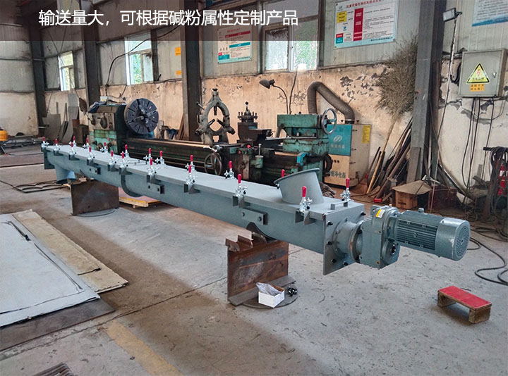 堿粉U型螺旋輸送機能將堿粉從一個地方輸送到另一個地方,主要通過旋轉的螺旋葉片推動堿粉向前移動,輸送長度可達30米,采用U型結構,機蓋可拆卸,方便隨時觀察堿粉的輸送情況,根據輸送長度和型號的不同,每小時輸送量從幾百公斤到50噸;堿粉的流動性,含水量等屬性不同,可提供有軸和無軸結構。