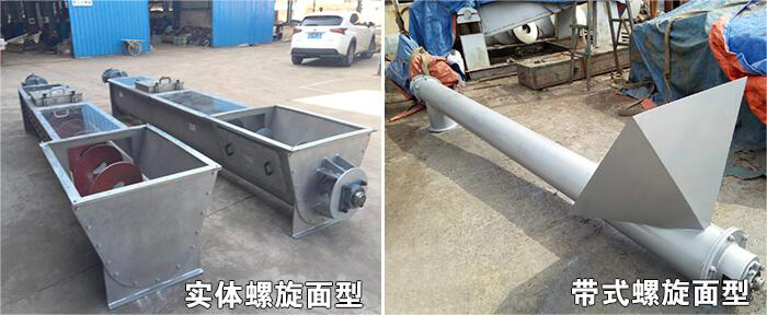 螺旋輸送機的螺旋葉片有實體螺旋面型、帶式螺旋面型及葉片螺旋面型三種。