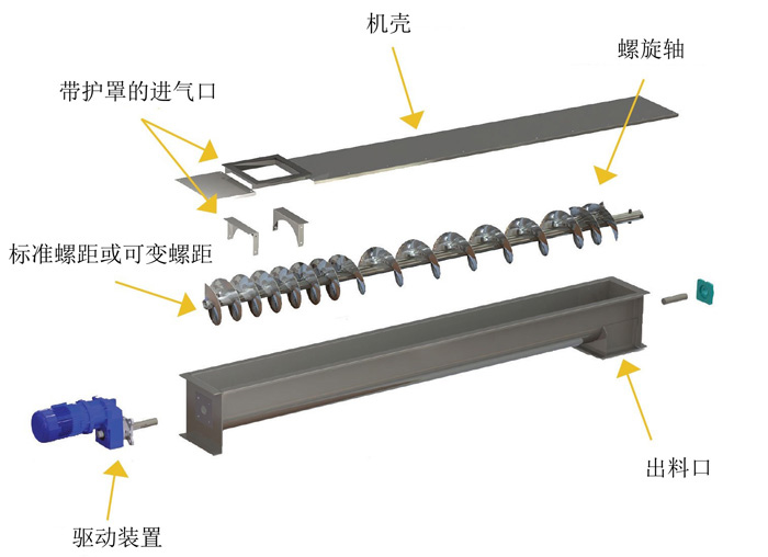 機殼: 機殼通常由鋼板或鋼管制成,用于包裹螺旋軸和物料,起到支撐和保護作用。