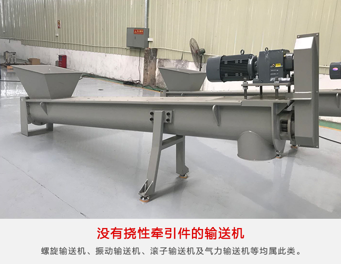螺旋輸送機、振動輸送機、滾子輸送機及氣力輸送機等均屬此類。其工作特點是使物品與推動件分別運動。推動件作旋轉(zhuǎn)運作(滾子輸送機)或往復(fù)運動(振動輸送機)時,依靠物品與承載件間的摩擦力或慣性力,使物品向前運動,而推運件自身仍保持或回復(fù)到原來位置。